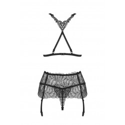 The set offers countless combination possibilities: wear the garter belt with or without the bra, or combine the thong with other items from your lingerie drawer.